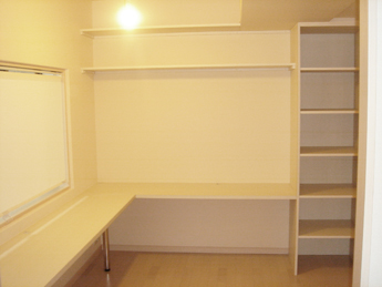 今人気のスタディールーム。リビングとつながる空間で、パパやママとお話しながら、楽しく、お勉強したり、絵をかいたり、遊んだりできるように、プランニングしました。ママのアイデアと愛情で素敵なお部屋ができました。